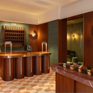 The combination of four round legs and the eight holes in each seat create a stackable stool with a graphical approach. The stools poke one another to build up a stack, as the four legs pass through the holes of the other seat. The twist of each stool added creates a rhythm as the stack grows higher. The addition of the fourth stool establishes a new layer with a different tempo. The composition of different colours and variations to the rhythm lead us create our own structure, like a geometric sculpture.