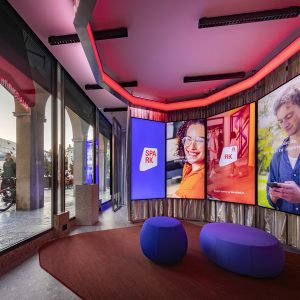 Narrow, deep, and as said, with high ceilings, the space was stripped of anything ornate to show off the dimensions in their purest form. Playing on this depth, a number of presentation alcoves counter the corridor effect, while also highlighting items from the collection. These alcoves are bound by low partitions made from zinc plates used in construction and supported by fleecy fabrics arranged in tiers that hold items for display. The setting is framed by oak plank flooring, cleverly installed diagonally to visually reduce the corridor effect, and a ceiling composed of cement building panels, held by chunky screws.