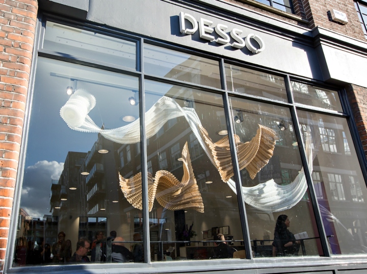 The dying art of paper pleating has been captured in an art installation by up-and-coming designer maker Kyla McCallum, founder of design studio Foldability. Described as ‘London’s new Queen of Origami’, Kyla has been commissioned by Desso to create a unique art piece on the theme of ‘Transitions’, which launched during Clerkenwell Design Week.