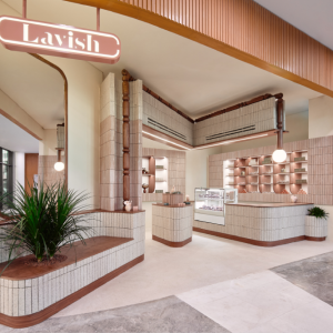 The warm traditional parquet is the ideal surface for the clientele to and fro. The architectural result is far from the cold and ascetic style currently in vogue in eyewear interior design; indeed, the deliberate and bold use of colour is one of the core values of the Mondelliani brand. All the spaces are decorated with EFFEITALIA – ARTE wallpaper from the Dots-Le Corbusier collection, which reinterprets the philosophy of “architectural polychromy” of the famous architect and designer so intimately linked to glasses as iconic accessories. The BLACK TIE seatings were designed exclusively for Mondelliani and selected for their casual-chic taste and Italian design; they guarantee elegance without neglecting the client’s comfort and well-being. The lamps of the social space are by Michael Anastassiades for FLOS.
