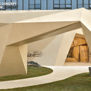 Strong colors, lights contrasts and graphism created a dramatic and dynamic architecture. There is a big box, in the middle of the room, painted with yellow and black stripes indicating a danger zone, where inside of it there is a quiet (or loud!) teenager bedroom, with all the magazines that Bob Gruen`s photos appeared printed and plastered on the walls.