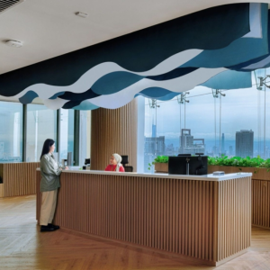 There will also be common building support spaces including a large cafe for staff. Most existing interior walls, partitions and ceilings will be removed to create open office space with exposed ceilings; openings will be created in exterior walls to provide views to the outside and bring natural light into the interior of the building.