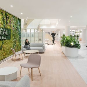 The building has an enjoy-work ethos and is incredibly productive, with loads of natural light, and surroundings that include a lake and a park, but Blackstone wanted to use this space in particular to inject some character to appeal to a wider tenant mix, as some tenants struggle to see beyond the Cat A finish.