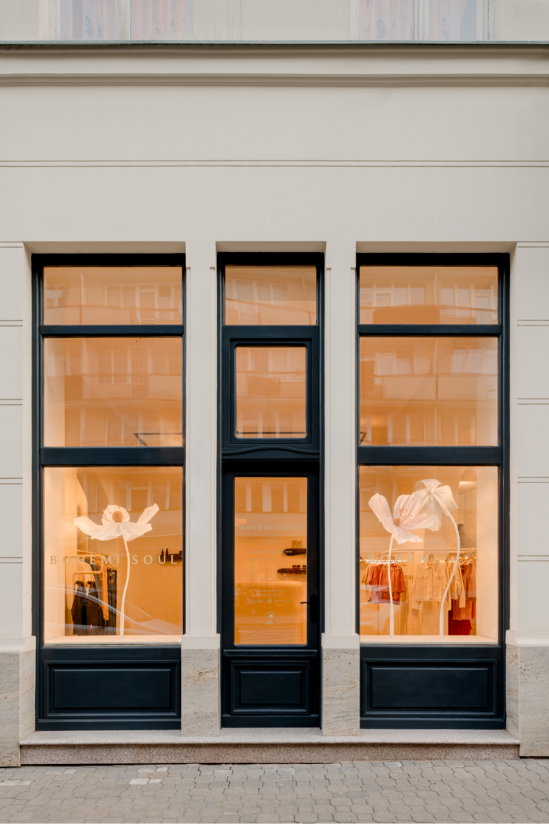 Founded by Agnieszką Balbierz, Bohèmi Soul is a Polish sustainable womenswear brand which has made waves in the local fashion scene. Banking on its growing populairy, the brand has opened branded retail spaces, and the very latest to open is a flagship store in Warsaw‘s historic Śródmieście district. The Bohèmi Soul retail space occupies a unit on the ground floor of a listed, early 20th-century residential building by Polish architect Stanisław Grochowicz (1858-1938). The brand tapped Warsaw-based interior architect and brand designer Kornelia Kiełbasa to create a fitting setting. The store features three rooms, in addition to a relaxing café, aptly called Bohèmi Café. The retail space has a soothing colour palette of off-white, buttercream, and earthy tones, while two archways are a subtle nod to the natural curvature of planet Earth.