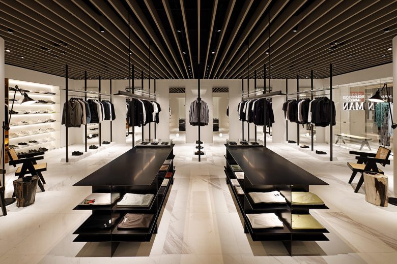PARIGOT, a fashion boutique that has primarily focused on women’s wear in the Tokyo metropolitan area, has opened its first men’s wear store in Tokyo called Le GRAND CLOSET de PARIGOT / MAN, with items from over 100 different Japanese and international brands. The concept of the interior design is “a private closet of an imaginary art collector who loves fashion, built for admiring his beloved clothes”. One of the sources of inspiration was the seemingly bland yet emotionally poignant images of Candida Höfer, a German photographer who represented the Becher School. The other was the daydreamy and unrealistic world within ”American Psycho,” a film starring Christian Bale that depicts the life of a business executive/yuppie in 1980s New York. The store contains two areas with distinct tastes, one contemporary and the other authentic, designed to match the great collection of items that range from high fashion and luxury-sport to classic.