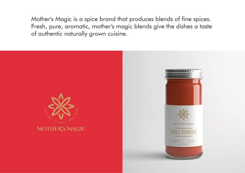 Mother’s Magic is a premium spice brand offering a range of carefully crafted spice blends. Each blend is made from fresh, pure, and aromatic ingredients, bringing the authentic flavors of naturally grown cuisine to every dish. Born out of my passion for cooking and developed during my college days, this project reflects my dedication to bringing the true essence of spices to kitchens everywhere. I carefully selected colors and fonts to create a minimal yet luxurious feel for the brand, striking a balance that conveys elegance without seeming overly expensive.
