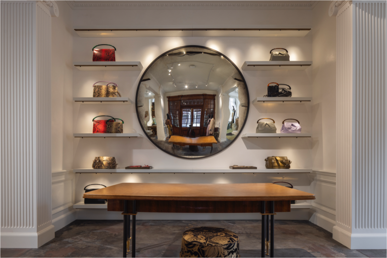 One floor below, in the basement, the setting is more cozy and intimate, and here, the men’s collection is presented. Adding a playful element to the store, while also being a nod to the British capital’s undeniable reputation as a cradle of pop music, is a vinyl corner with a handpicked selection of vintage and contemporary vinyl. The shopping experience is further elevated by a large number of carefully sourced design elements and artworks. A Labia chandelier by Bulgarian designer Vladimir Slavov serves as a sculptural focal point in the beauty corner, while a William Waterhouse artwork introduces a dynamic sense of movement with the collection. An extra-large Round Convex Mirror by Collier Web subtly with light and space. As for the art works that shoppers will encounter, include two lithographs by David Hockey, an etching by Man Ray, and Gilbert Jackson‘s painting Portrait of a Man. Mind you, in the course of this year, additional Dries Van Noten boutiques will open in Milan and New York City. © superfuture