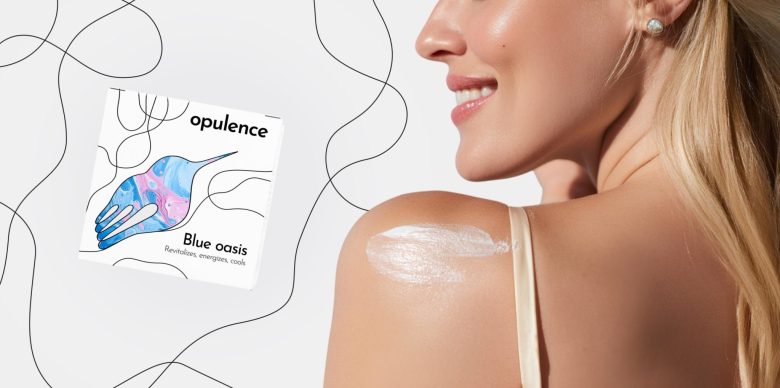“Blue Oasis” — in cool hues, to refresh tired skin.