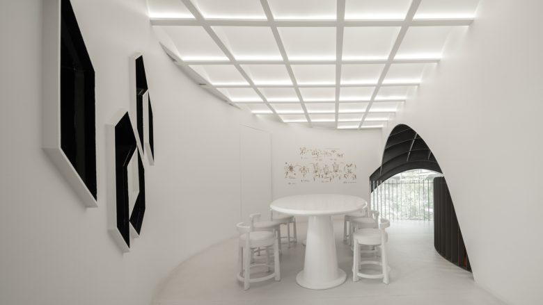 Nana Coffee Roasters, Central Westville Branch started from the question of how we can communicate the story of the Nana Coffee Roaster Brand in a distinctive way within a small area of 150 sq.m. The concept is derived from the conversation with the brand owner as he recalled his business journey to the time when he sees the “light at the end of the tunnel”, this story, combined with the available small space, have inspired the architect to design a cave-like structure containing “space within space”.