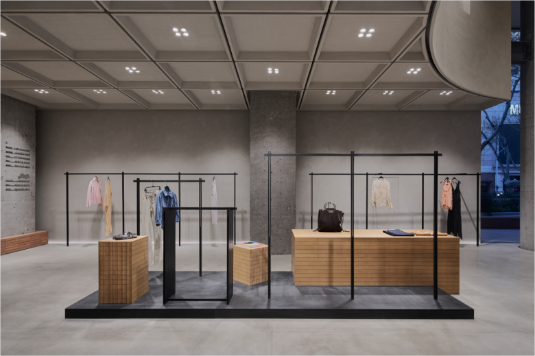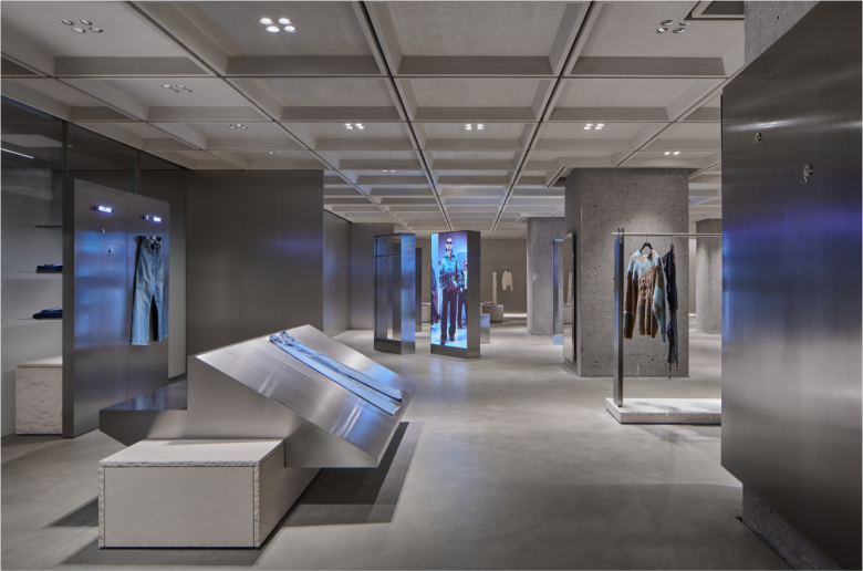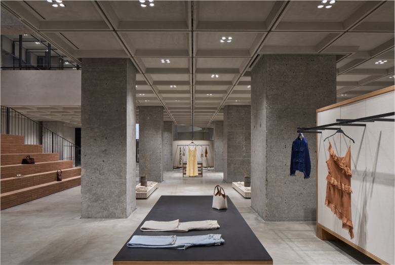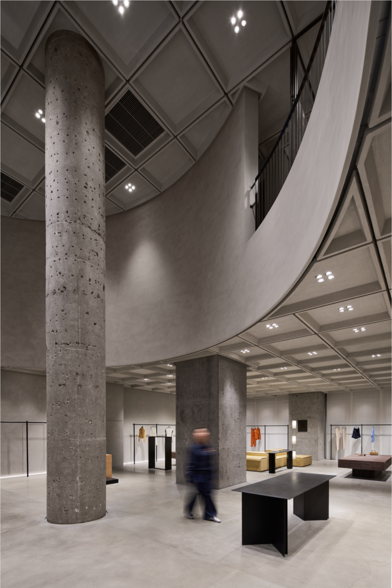 As such, the shopping experience becomes something more than merely transactional, appealing to all of the shopper’s senses. The flagship store sees a myriad of different settings tied in by recurring exposed structural columns, matched with polished concrete floors, and a concrete cassette ceiling. Needless to say, new technology has also been integrated in the store design, after all, ZARA is the go-to address of primarily Millennial and Gen Z shoppers who are extremely tech-savvy. An automated clothing transportation system enhances efficiency, quickly processing clothing organisation. Additionally, as the planet’s first ZARA store on the planet, it has vending machines selling T-shirts, and a bookable, professional-grade photo booth called Zara Fit Check can be found on the premises, offering an interactive, high-quality digital experience. The new ZARA flagship store stocks a selection of the brand’s collections for women, men and kids. © superfuture