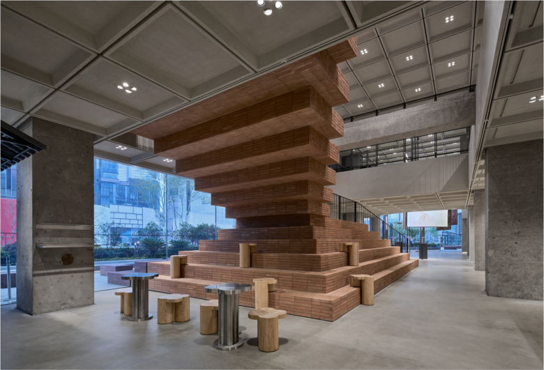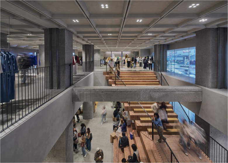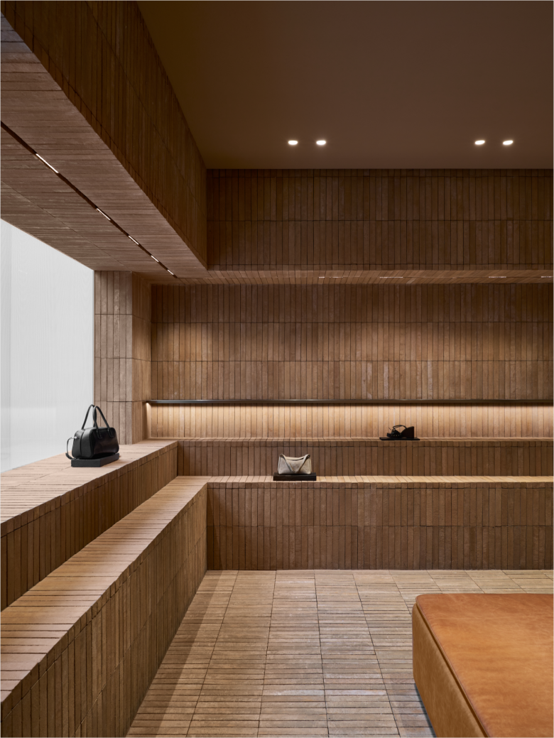 Designed by AIM Architecture, the retail space aims to be an extension of the bustling city of almost ten million inhabitants, and this is symbolically, and also cleverly, captured by store’s ground floor Zacaffè, a coffee parlour which has been separately designed by Paris-based design practice Art Recherche Industrie. Situated next to the main entrance, the comprises a service station housed in a cubicle and a seating area comprising elaborate terraced seating crafted from red bricks, which on one side goes upwards in reverse, serving as support for a staircase to the upper floor. Mind you, the seating even extends outside, beyond the floor-to-ceiling glass. It’s not surprising that his spot also acts as a platform for artistic collaborations, brand storytelling, and cultural activations, enabling ZARA to engage with the community in new and evolving ways. Given the aim to connect with the surrounding urban environment, boundaries between retail, public space, and cultural engagement have been cleverly blurred.