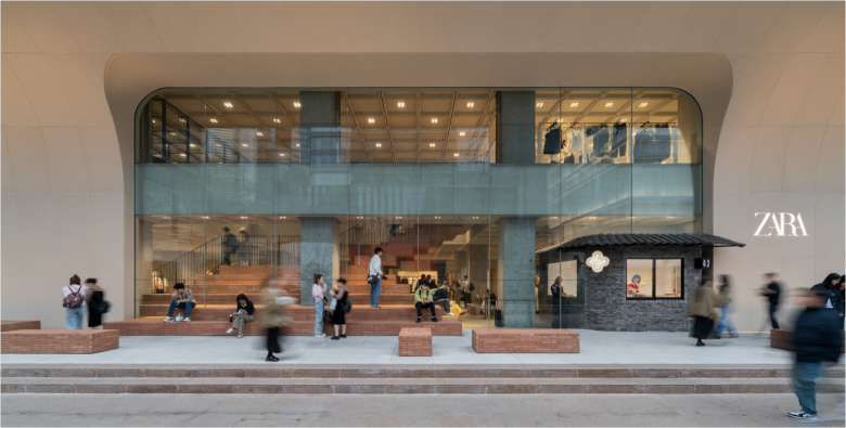 As a mass fashion retailer for many decades, it’s somewhat surprising that ZARA has quietly pulled the architecture card to keep its following mesmerised. But then again, a few peers operating in the same consumer segment have already successfully done so, bolstering their profile along the way. Actually, this was clearly demonstrated a little while ago with the brand’s ZARA Man and Zacaffè opening in Madrid, an event we’ve covered in a previous post. The Spanish retailer has just inaugurated a striking flagship store in Nanjing, which is emblematic of this trend, pulling out all the stops to offer an elevated shopping experience. ZARA secured a strategically located 3,450 sqm. (37,136 sq.ft.) unit spread across two levels of standalone building right in between Nanjing Xinbai and Zhongyang Shangchang, two large shopping centres in the Xinjiekou district of the city.