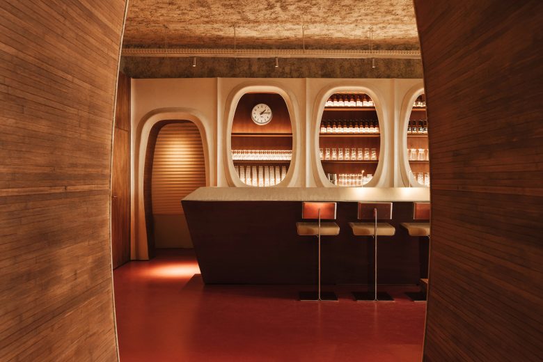 To complete the experience and make it full, every piece of furniture was self-designed, from the wall sconces to the lamps integrated into the tables, down to the napkin holders. Like in every PNY restaurant, a chair was specifically designed for the project: Snow, made out of two sheets of aluminium, is aimed to be both comfortable and sharp.