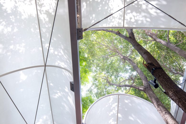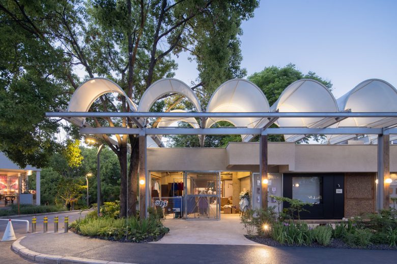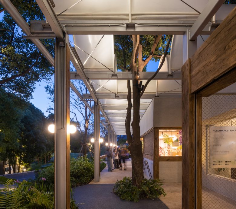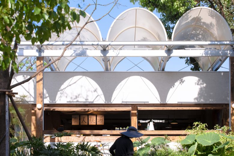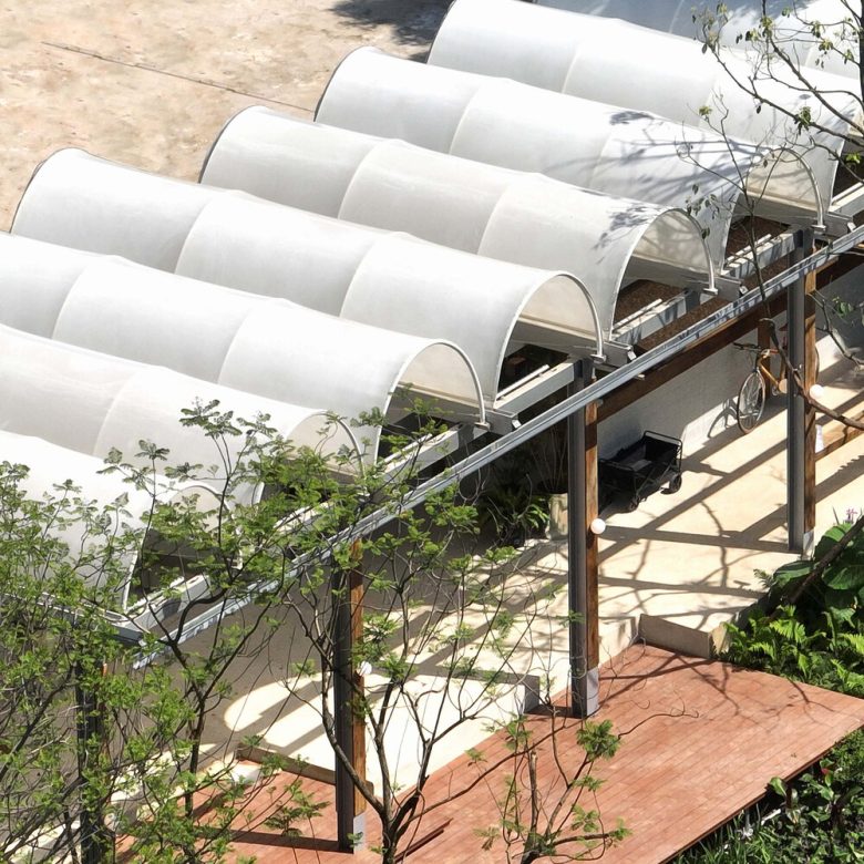 3.Sensible Materials – The sensitivity to materials and light is particularly highlighted in this project. The membrane material of the arched roofs diffuses soft light under the sun like tree leaves, transforming between day and night to create a poetic and spiritual spatial experience. Exposed concrete, steel structure beams and columns, semi-enclosed aged wood, and climbing greenery all naturally evolve over time and through the seasons, infusing the building with life and emotion.