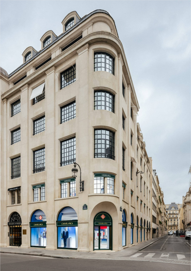 In a major upgrade of its operations, Casablanca has recently inaugurated its first retail space at home base Paris. The fashion brand, founded only in 2019 by Charaf Tajer, has since gone leaps and bounds, garnering leading stockist across the planet with its fun-infused, luxed-up leisurewear styles. The Casablanca flagship store occupies no less than 460 sqm. (4,951 sq.ft.) spread across three floors of a building alongside rue due Faubourg St.-Honoré, known to be one of the city’s most prestigious shopping arteries. Designed by both Tajer and Casablanca‘s art director and creative lead Steve Grimes, the retail space is an extrapolation of its signature style and more, playfully blending in classic wall mouldings, futuristic ceilings and lighting, and mosaic flooring that references classical Greek antiquity.