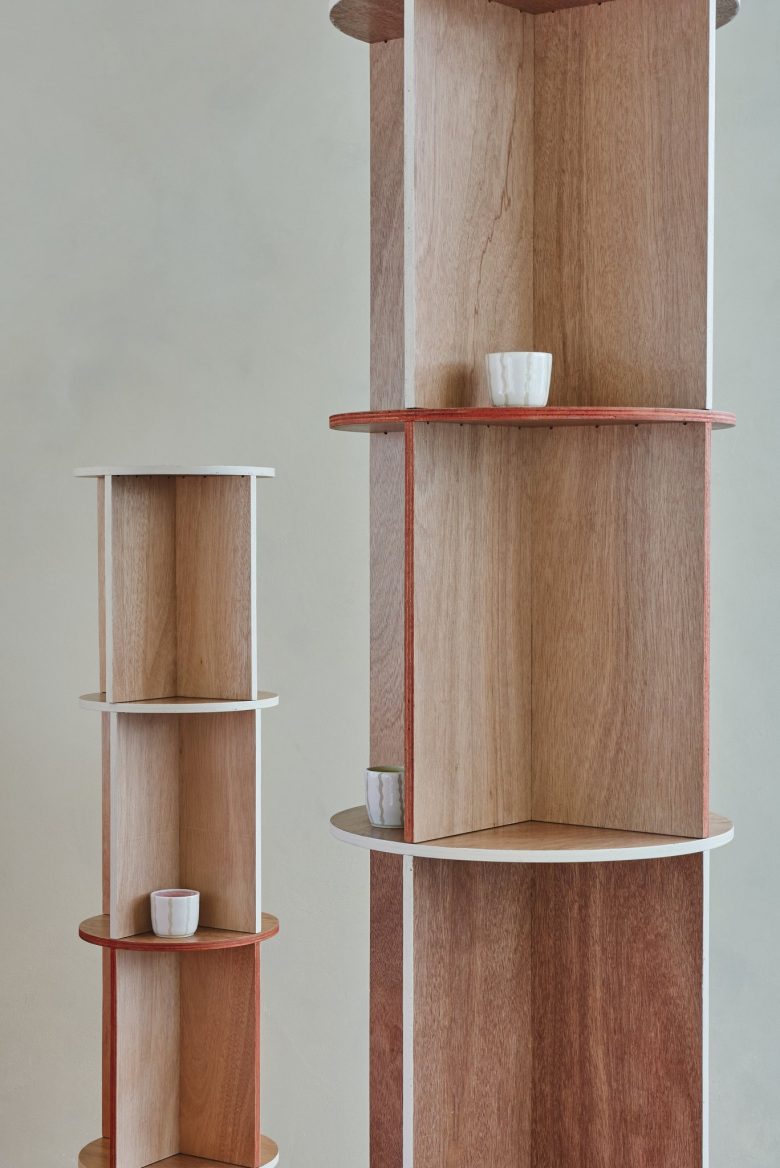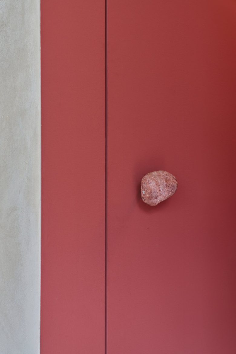 The built-in furniture is stacked to create one large volume, aiming for a space where different materials and functions coexist with a comfortable texture.