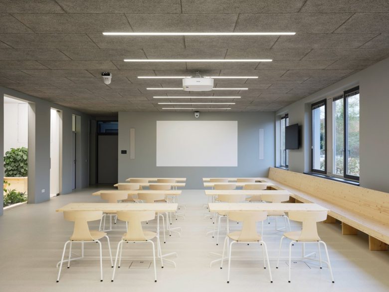 “It goes way beyond the common office setting by offering a wide spectrum of different spaces and atmospheres to its users who constantly navigate between them,” said Zeller & Moye co-founder Ingrid Moye. “Aiming for a sustainable project with the well-being of the users in mind, plants were embedded throughout all areas and only natural materials were used,” she told Dezeen.