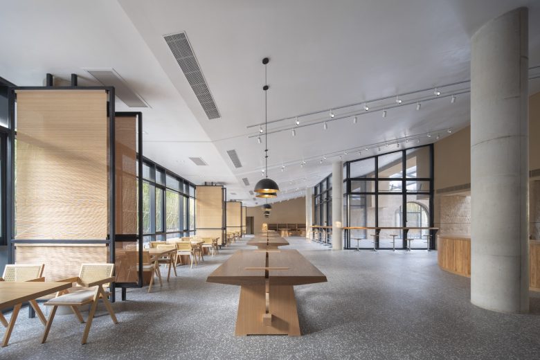 Secondly, as an organizer of functional sequences, the corridor connects in a counterclockwise flow, starting from the original guardian houses (gatehouse, restrooms and dormitories), refined monastic quarters (converted from old administrative buildings into guest rooms), the restored Lv Gong Shrine, and finally to the transition zone of the original site. The outer walls create four distinct poetic spaces, while the inner perimeter encloses a central garden, together forming a self-organization system for wandering through the site.