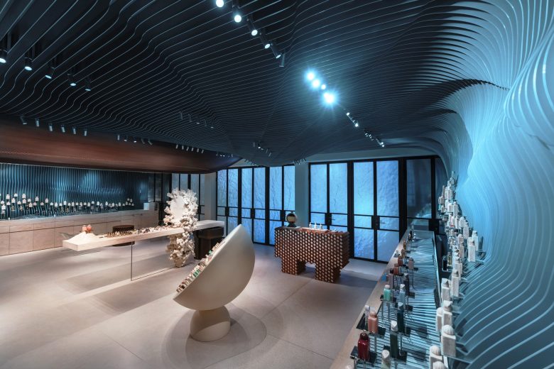 Functionally, The Sillage balances drama and intimacy. It accommodates large flows of visitors without losing its emotional tone, offering soft Ghost chairs, interactive rituals, and future bespoke services. More than a store, it’s a slow, poetic brandscape—anchored in story, precision, and spatial choreog