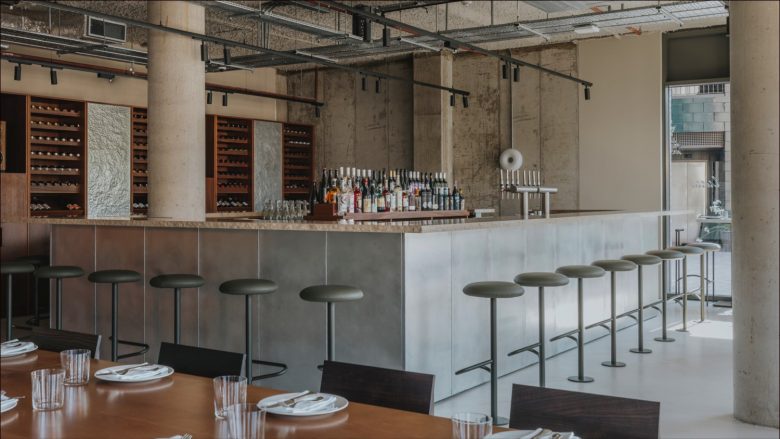 Although London has seen a socio-economic shift in the past few months, its high-end retail and hospitality scene seems resilient and unaffected, remaining for the time being one of Europe‘s most dynamic. Mind you, new striking establishments continue to open, and one of them is the design-led Canal restaurant in the city’s leafy Maida Vale neighbourhood. Situated on the premises of Westbourne Park, a sizeable new urban redevelopment project, Canal occupies a lofty 280 sqm. (3,014 sq.ft.) unit on the ground floor of a newly constructed building overlooking the Grand Union Canal. The interior design is a collaborative effort of interior and furniture design studio A-nrd, Dominic Hamdy of HAM Restaurants, the company which manages Canal, and furniture and lighting practice Interior Address, the settings take ample cues from the area’s industrial past and its waterside setting. As such, a palette of raw finishes, from exposed concrete to visible conduits, forms an alluring backdrop for the restaurant’s raw, handcrafted interior.