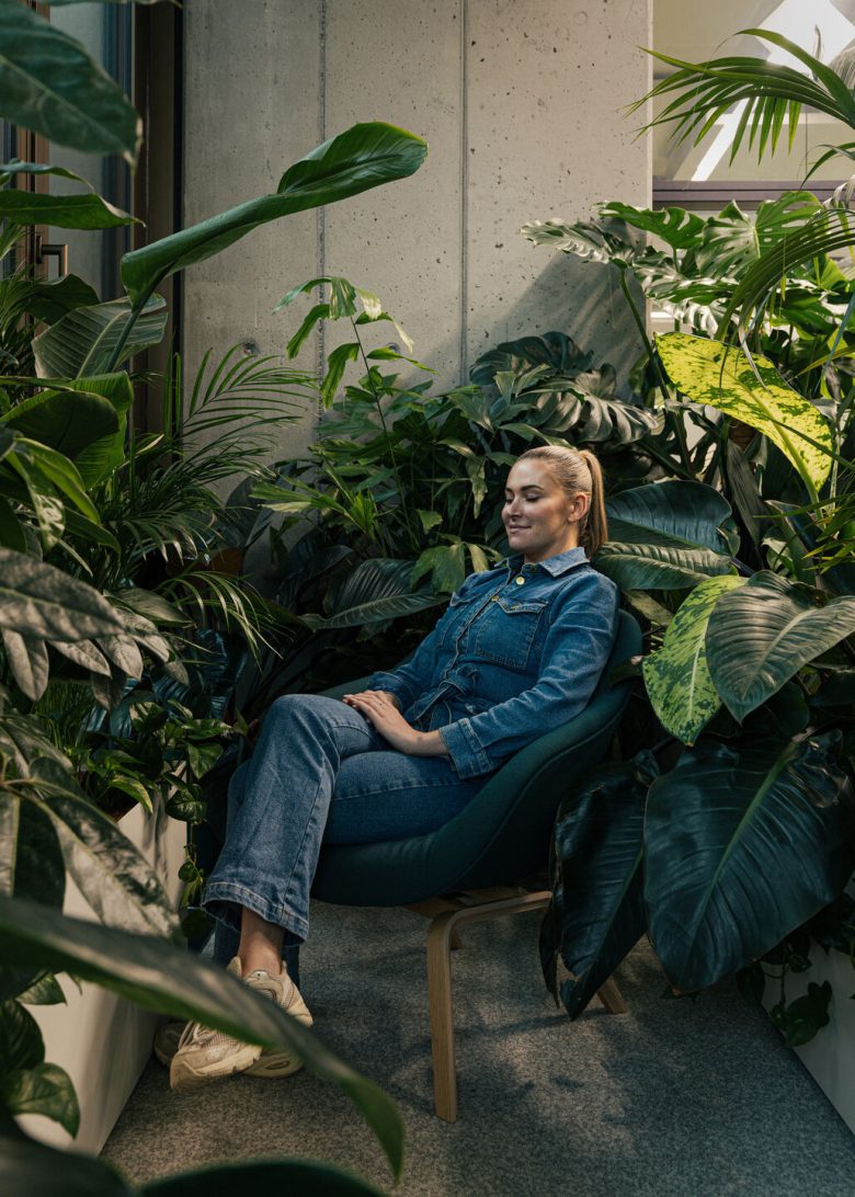The layout, designed for up to 120 staff, transitions from lively public areas to quiet, focus-driven zones. Visitors enter an energetic welcome and event space, while focus zones, co-working areas and collaboration spaces support diverse tasks. For moments of recharge, two outdoor terraces and a greenery-filled library provide peaceful retreats.