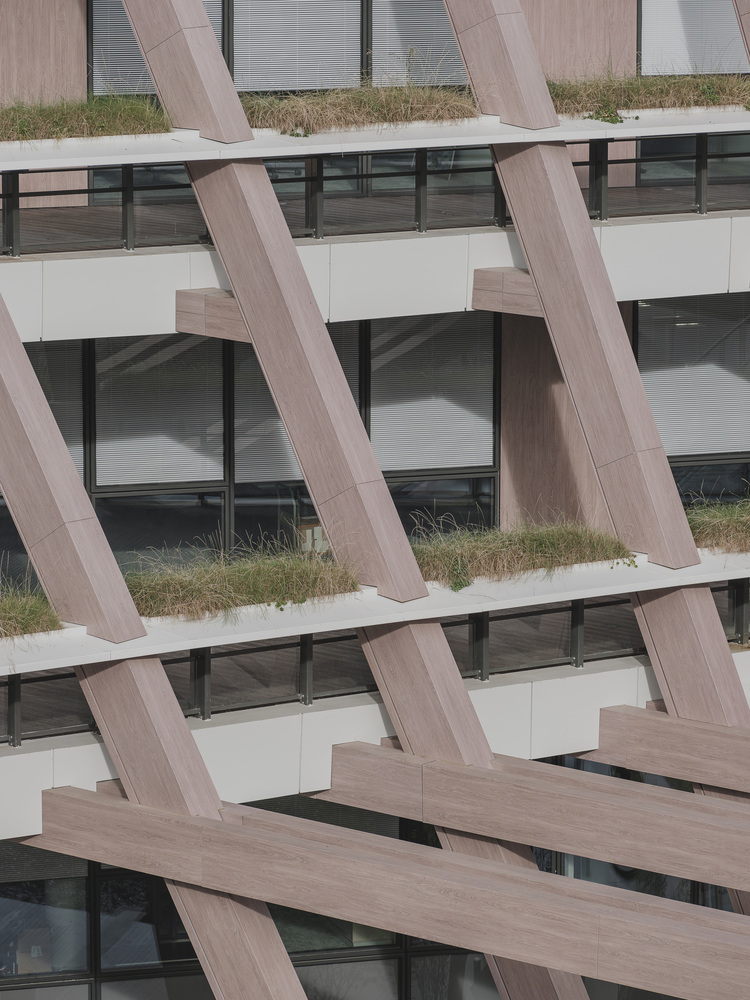 Sustainable Landscape and Urban Biodiversity – Developed in partnership with Land’Act Paysage and in coordination with the ZAC’s urban planners, the landscape design blends seamlessly with public spaces. Alternating planted areas and walkways are enriched with native plant species. Visible rainwater management systems (swales) and the widespread use of green roofs and terraces help combat the urban heat island effect and preserve local biodiversity.