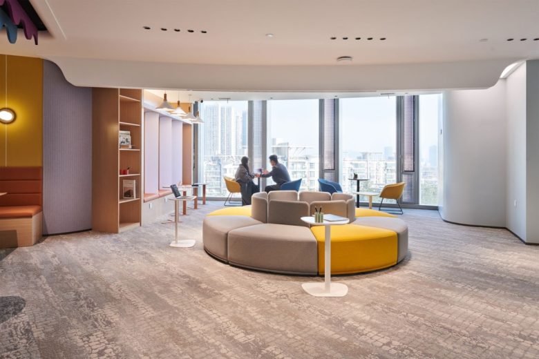 Brightly colored leisure and collaboration areas artfully connect different zones, creating a warm and lively ambiance. Unique ceiling and wall designs add visual depth to the space. Employees can unwind quietly in the N Box circular seating arrangements or engage in relaxed, seamless collaboration and discussion.