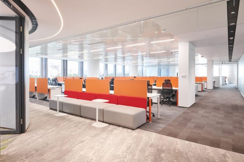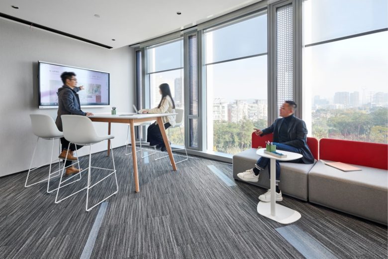 The color palette is dominated by white and grey, accented with bright hues that inject vibrancy and vitality into the space. In the open-plan work areas, neatly arranged light-toned Arc workstations paired with neutral carpets convey sophistication and professionalism. Strategically placed around these workstations are flexible collaboration zones featuring N Box collaboration sofas and Pato side tables. These areas extend the space’s functionality, providing ideal settings for impromptu discussions or informal exchanges, effectively boosting collaboration efficiency and sparking creativity.