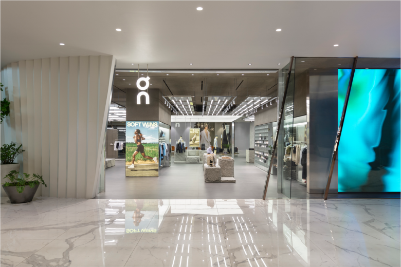 First Jakarta, then Singapore, and now, Bangkok. We’re talking On‘s expansion across some of Southeast Asia‘s most alluring shopping destinations, and this new outpost in the Thai capital is likely its most prestigious. Nestled on the ground floor of ICONSIAM, the city’s only luxury shopping centre that’s alluringly draped alongside the Chao Phraya river, the On store opened its doors in collaboration with Singapore-based retailer Gill Capital. The retail space occupies a spacious 826 sqm. (8,891 sq.ft.) on the ground floor of the multi-storey shopping centre, and features a clean and understated design which pairs natural inspiration with cutting-edge innovation. As such, ample cues have been taken from the bucolic beauty of the well-known Blue Spring in the rugged countryside of the northern Khon Kaen province, resulting in an intricate constellation of curved design elements, locally inspired textures, and Swiss-engineered precision which beautifully captures the narratove of On and its coveted product range.
