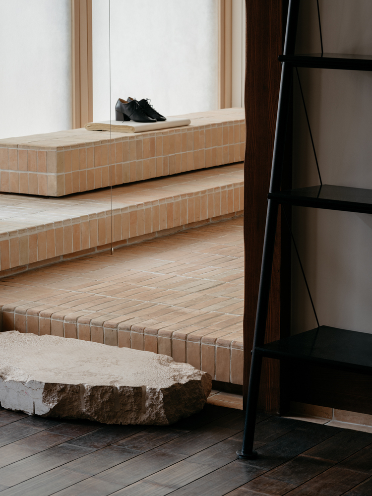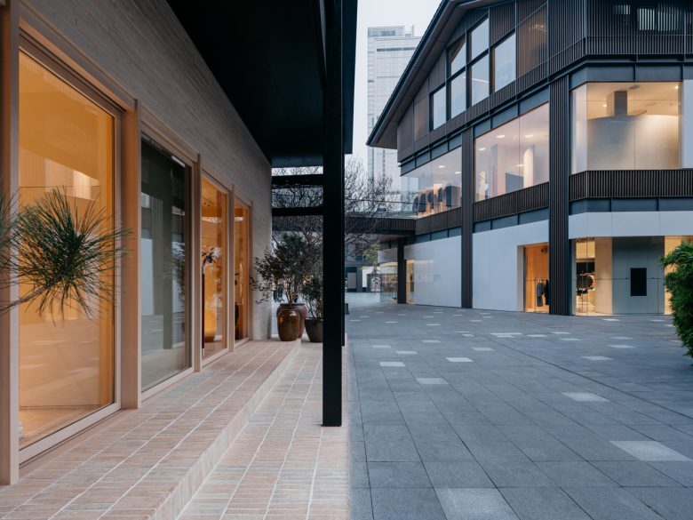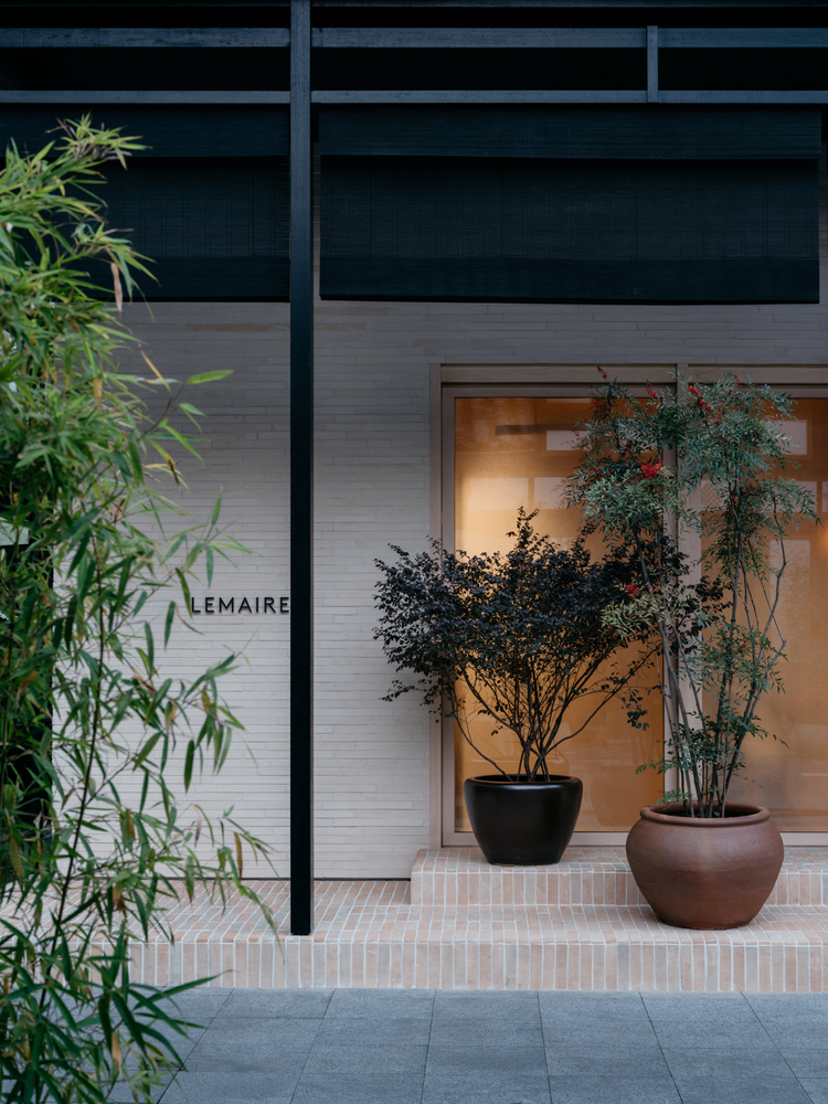 Unlike conventional approaches that prioritize maximizing interior space, the project intentionally recesses the façade to create a landscaped buffer zone, seamlessly linking the lively exterior with the calm interior. The landscape features a two-tiered staircase: visitors ascend to an entry platform and then descend into the interior. This “one step up, one step down” circulation enhances the spatial transition and adds a sense of ceremony to the entry experience. By balancing urban vibrancy with tranquil design, the boutique not only elevates the visitor journey but also reflects Lemaire’s ethos of refined simplicity and understated elegance.