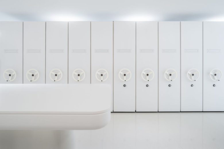 The multifunctional space on the top floor can be used for presentations, exhibitions and events. An interactive brand exhibition allows visitors to fully immerse themselves in the company’s history and highlights key milestones in its development. In the immediate vicinity is a large archive reminiscent of a museum collection. The company’s history is stored in safe-like roller cabinets here. This means of presentation demonstrates the great respect that should be afforded to one’s own history, which can serve as a source of future innovation when studied.