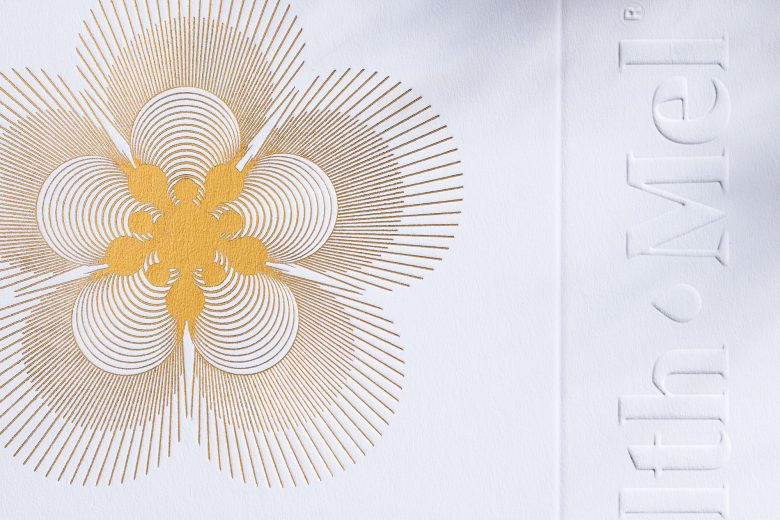 The design of Health Mel balances nature, wellness, and natural-science. Moving away from traditional honey imagery, we crafted a scientific-inspired precise linear diagram of the Mānuka flower, highlighting its beautiful symmetry and adding a touch of gold foil to give it a warm honeyed glow. The minimalist packaging combines gold and black tones with a soft-textured label that lets the flower shine.