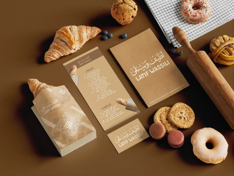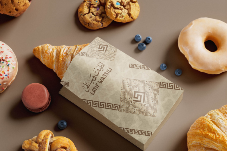These earthy, food-related tones make the wrap feel natural, appetizing, and rooted in tradition. The background texture adds warmth and softness, while the geometric motifs build a consistent, recognizable brand presence.