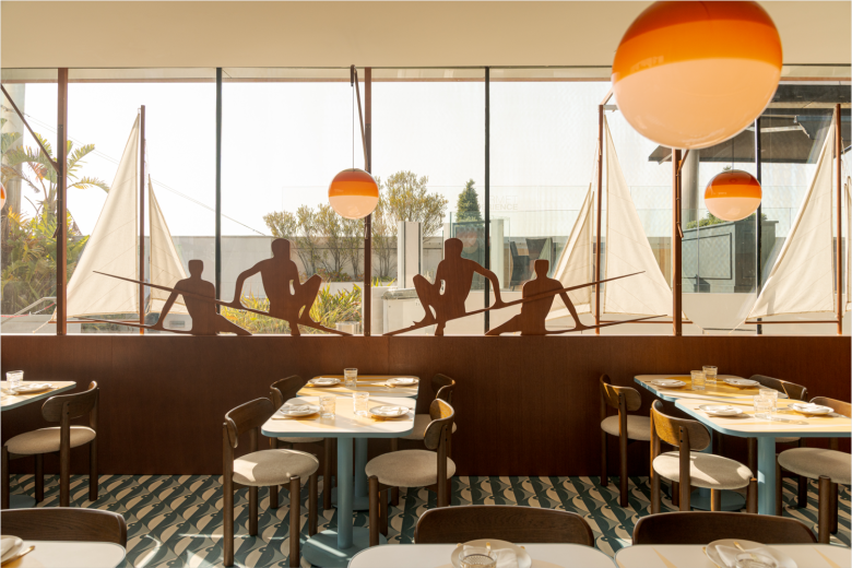 The Portuguese capital isn’t exactly short of eateries where to indulge in good local fare. In fact, options have only increased in recent times, and gourmets can now pick from highly diversified offerings befitting almost any flavour or budget. A new arrival in Lisbon‘s culinary scene is El Mar, the latest venture of celebrated Brazilian-born Portuguese chef Kiko Martins. Perched on the seventh floor of the El Corte Inglés department store in Lisbon, the El Mar restaurant occupies a compact nook with large windows on two sides which allow in floods of daylight and add to the maritime design theme by local design studio Cateto Cateto. Referencing Martins’ bicultural roots, and notably the Portuguese coast and the shores of Rio de Janeiro, the setting sees a fusion of styles—Portuguese tiles, cushions inspired by Carioca beaches and a myriad of cutesy silhouettes of sailors and sails.