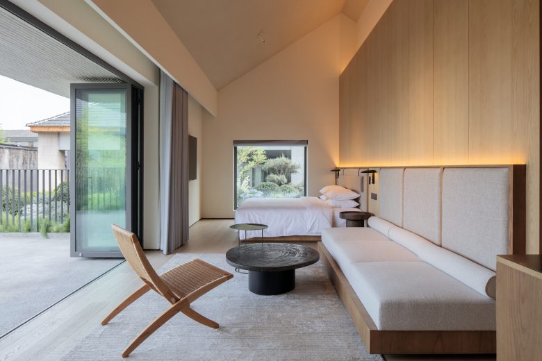 Design Concept of Guest Rooms — The hotel features 40 guestrooms in total. The overall design retains and maintain the original courtyard layout. For the renovation of guestrooms within the cultural heritage building, the entire timber structure and facade were preserved, while modern amenities such as air conditioning and heating systems as well as bathrooms and showers were added. The relatively open layout and minimalist design approach create a relaxed and comfortable modern atmosphere in the guestrooms.