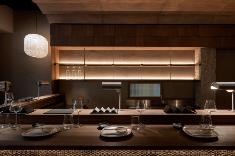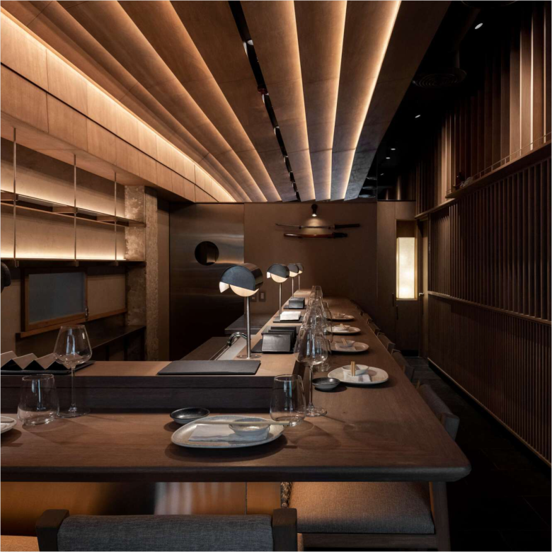 As the cradle of Peruvian-Japanese or Nikkei fare that set the culinary world ablaze, Lima has its fair share of gourmet dinings spots, and the scene here continues to evolve. Nestled in the tony seaside neighbourhood of San Isidro is UKE, a newly opened hand roll bar situated on the perimeter of a shopping centre. Occupying just 37 sqm. (398 sq.ft.), it has its very own street side entrance, and features an interior design by local architecture and design practice ESTUDIOLOCAL. The latticed façade and suspended Noren decorations may hint a traditional design, but when stepping inside, a distinctly contemporary setting with a matching lattice backdrop unfolds which only subtly hints the legacy of the past. A lower ceiling and a small side table create an intimate reception area. UKE‘s inner sanctum sees a robust L-shaped bar takes centre stage, constructed with a concrete base, a front covered in Totora straw mats, and tiered top. The lower table top is a single piece of wood of approx. five metres long, was designed with softened edges, providing guests a comfortable touch when leaning against it.