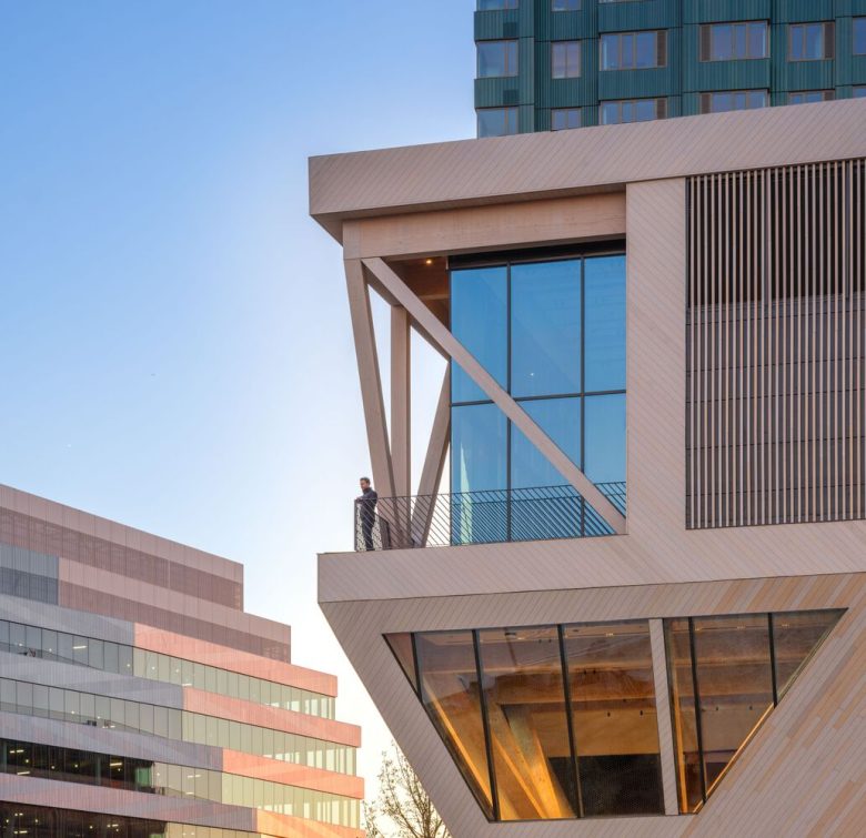 Studio Gang, the international architecture and urban design firm led by Jeanne Gang, announced the completion of the David Rubenstein Treehouse at Harvard University. Establishing Harvard’s first university-wide hub for convening, the building anchors the new Enterprise Research Campus (ERC) in Allston, which is dedicated to fostering innovation and collaboration. The Rubenstein Treehouse is also the first mass timber building on Harvard’s campus, setting a model for holistically sustainable buildings in Boston and institutions worldwide.