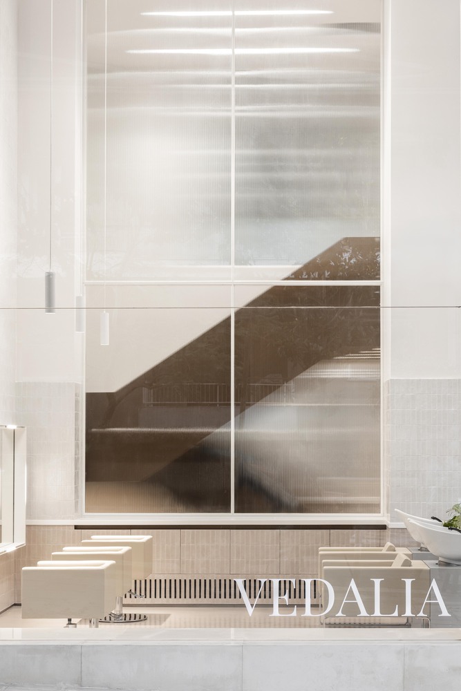 Rather than relying on bold gestures, Vedalia positions itself as a gentle intervention, where subtlety becomes a form of luxury. The salon cultivates an environment that values silence, clarity, and detail, proposing that the act of bodily care can also be an architectural experience. In this sense, Vedalia offers more than beauty services: it provides a daily ritual of relief, a brief retreat woven into the urban fabric, where architecture and care enter into quiet dialogue.