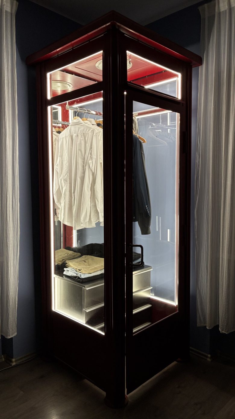 The telephone booths always have glass walls and are clearly viewable from the outside for security reasons. This is a message to the current owner: you have to be tidy. Always.