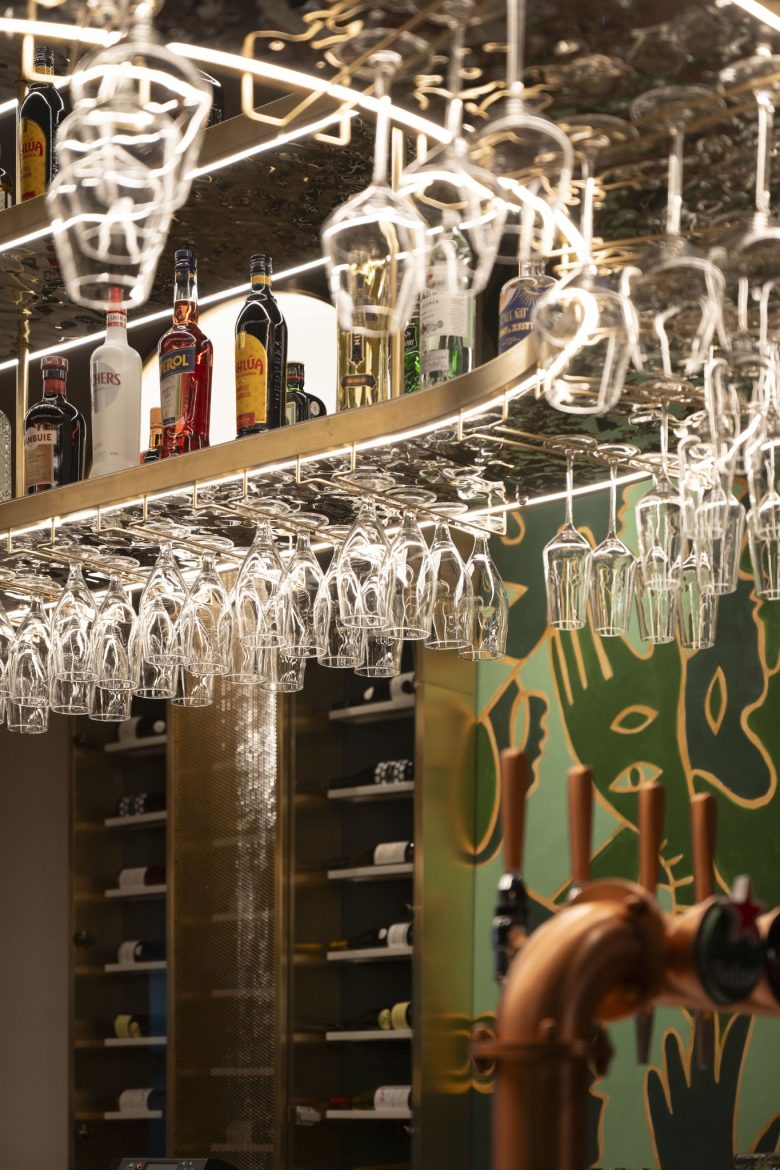 From the outset, FINCH sought to give this space a whole new persona and leant into a curated list of bespoke design elements, with the artwork and lighting placing high on the agenda. Jen Stelco was commissioned to hand-paint original artworks directly onto the wall