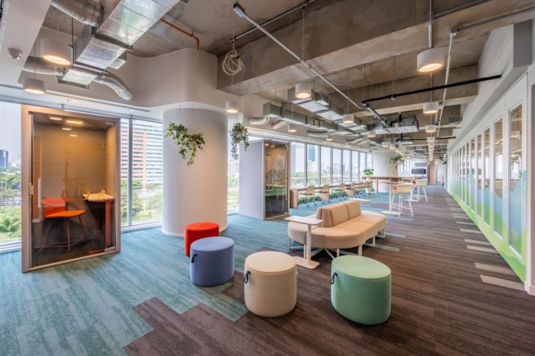 With a modern and colorful ambiance, the spaces are all designed for good acoustic performance in a layout that takes advantage of the panoramic views of the surrounding area, with abundant natural light and biophilia.