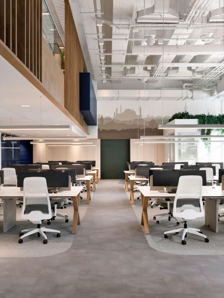 Marsh McLennan Istanbul office has a hybrid work manner. For that manner, we focused on giving the office a warm vibe by blurring the line between home and office. In order to ensure that in our design we have many agile working areas combined with standart workstation zones. While doing that, we wanted to distinct this office from the many globally distributed offices of Marsh McLennan and we give the character of the city to the design elements to emphasize this is the Istanbul office.