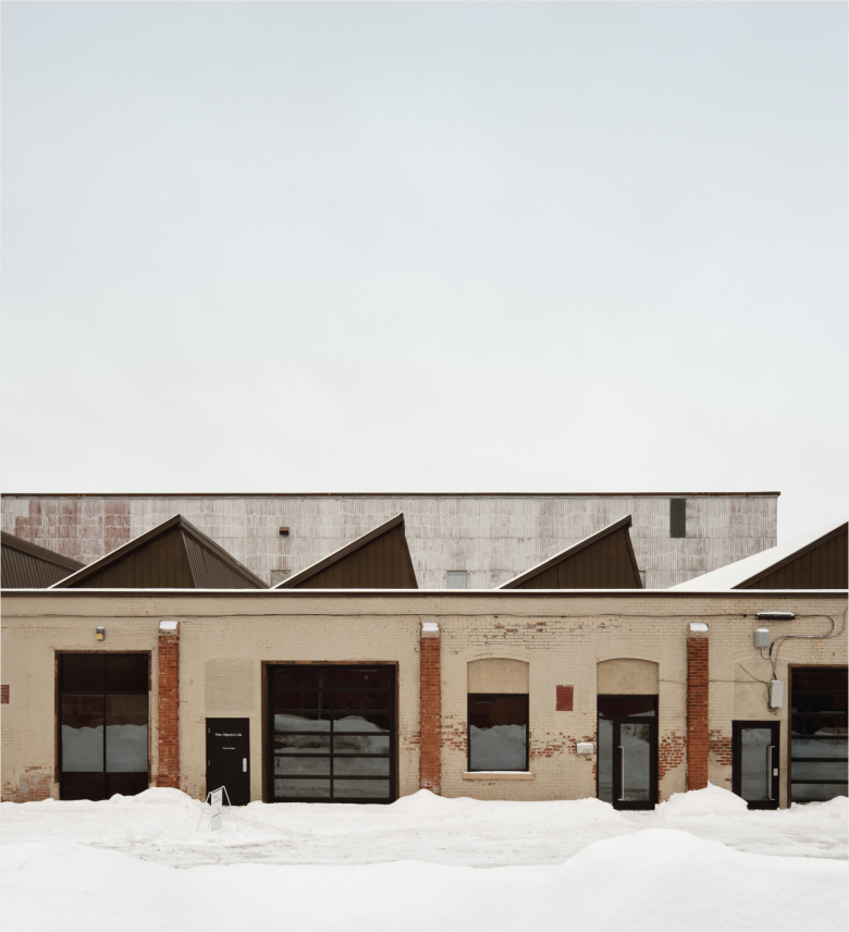In this digital age, innovations are abound, while at the same time, traditional boundaries are blurred. Foil Gallery, which opened its doors a little while ago in Mile-Ex, a former industrial area of Montreal which has seen an accelerated transformation in recent years, is an exemplary new venue. Founded by artist duo Frédéric Duquette and Jo-Anie Charland, Foil Gallery – mind you, it’s short for Finer Objects in Life – is a hybrid affair, combining a gallery, café, and bar on the premises of a redeveloped ammunition factory erected in 1910. Duquette and Charland tapped local atelier l’abri to create a fitting setting which very much retained the building’s industrial legacy while also blending in elements that firmly anchor the design in a distinctly contemporary context. First, the structure was fully stripped, laying bare its essential material framework of wood plank ceilings, timber trusses, and concrete beams and columns. The concrete slab floor has been cleaned and sealed, preserving the wear and tear of over a hundred years of use and history.