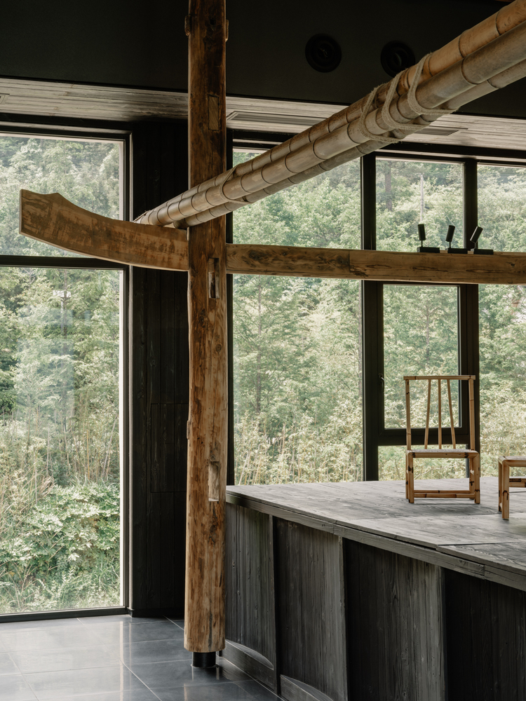Surrounded by dense forests and steep terrain, the site offers open mountain views but limited accessibility. The design team began with in-depth field research, exploring local villages, materials, and crafts to understand the mountain’s cultural and ecological context. This investigation informed a design that transforms natural textures and human traces into a coherent spatial narrative—connecting architecture, landscape, and community.