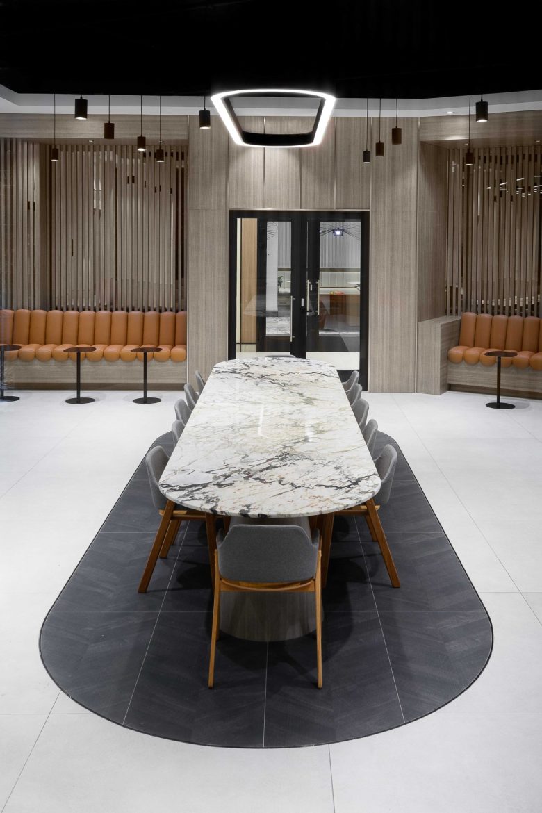 the sleek lobby to the residential kitchens and lounges. Clean lines and minimalist forms maintain quiet harmony, allowing the