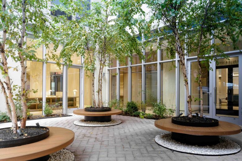 The team prioritized amenity programming that creates thoughtful connections throughout the ground floor courtyard, lobby,
