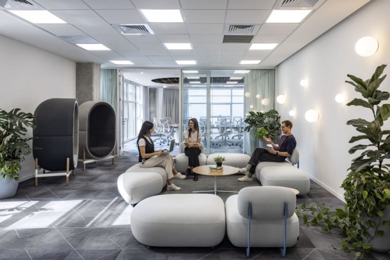 Rooted in Amdocs’ heritage yet oriented toward the future, the workspace expresses the company’s identity through movement, color, and thoughtful functionality. The project demonstrates how design can translate corporate culture into a tangible, energizing experience for employees.