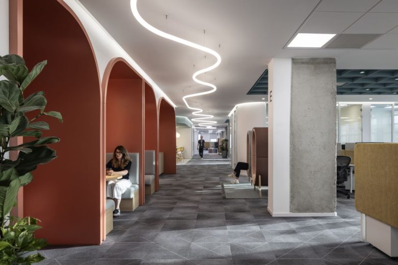 Studio Tali Gotthilf’s Amdocs offices in Nazareth masterfully blends innovation and community, creating dynamic work neighborhoods that reflect Amdocs’ multicultural identity while promoting employee well-being and sustainability.