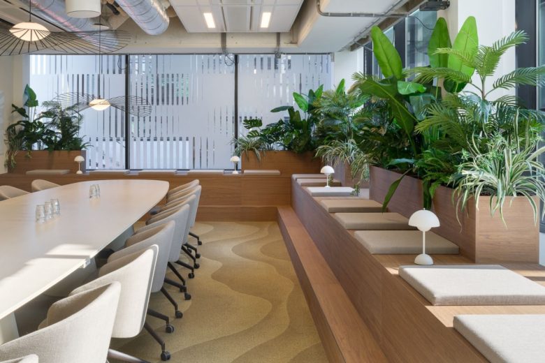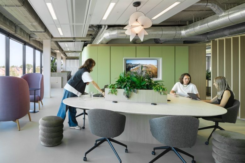 CBRE Design Collective’s Landal offices in Amsterdam redefine the workplace by blending biophilic design and hospitality elements, creating a welcoming environment that embodies the company’s brand identity and fosters collaboration.