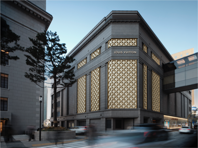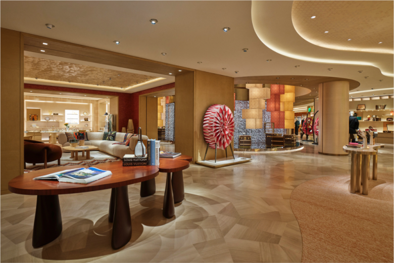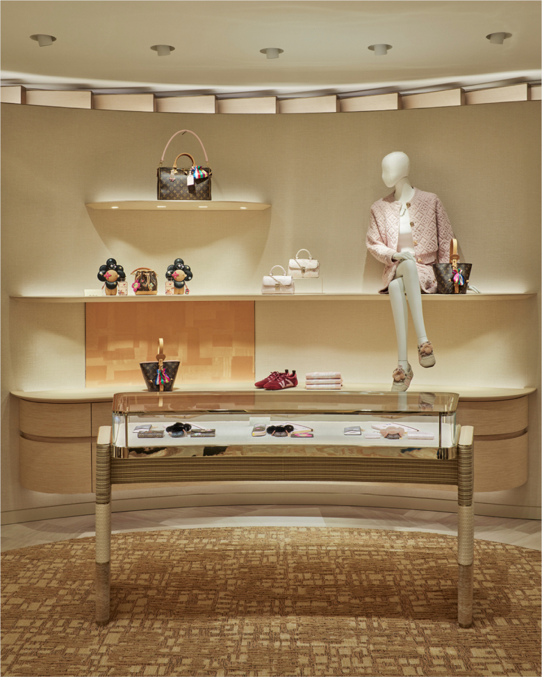 The site-specific installation previews the cultural escapade to follow and leads into the ground floor store. Beyond it, a spiral stair is wrapped in a dynamic LED display, forming a living timeline of craftsmanship while evoking landscapes and motion. The Louis Vuitton Visionary Journeys Seoul showcase continues on the fifth floor with the Origins room, where defining historical moments and evolution of Louis Vuitton are explored in six chapters. The Historical Canvases traces back the evolution of pattern, culminating in the creation of the Monogram canvas in 1896, a code of innovation, identity and artistry. The Packing Fashion section reveals the intimacy between couture and travel, where custom wardrobes and vanity cases translate elegance into motion. Together, these chapters compose a tableau of invention, a reminder that for Louis Vuitton, every new material or silhouette began as an answer to the call of voyage